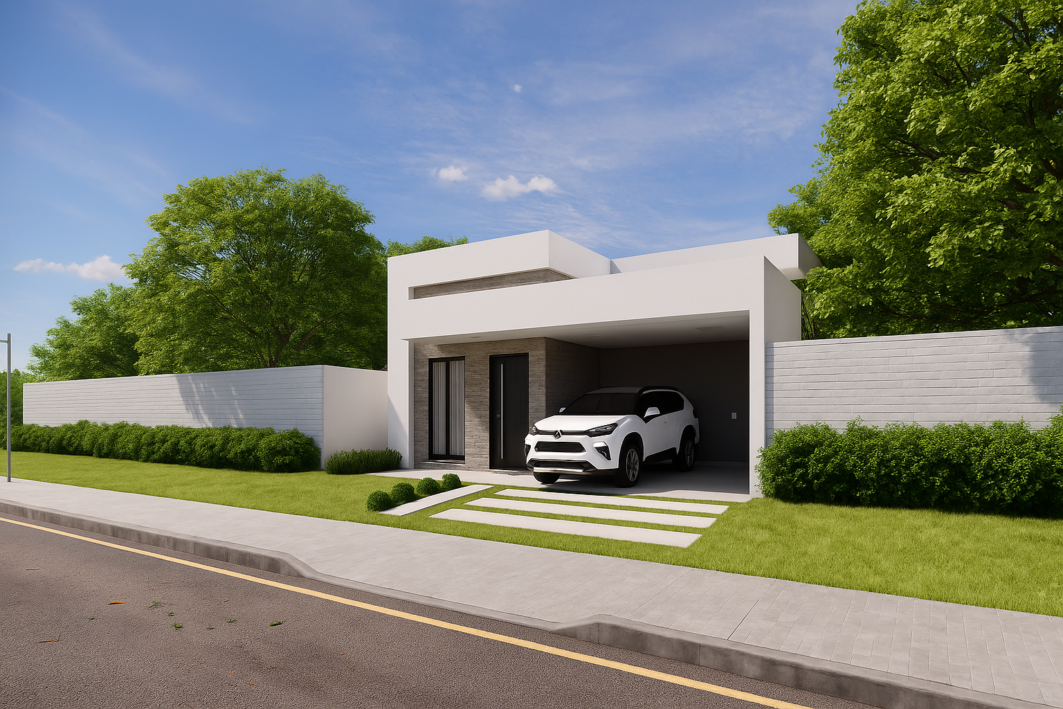 Imagens realistas do projeto para a visualização estética do imóvel.